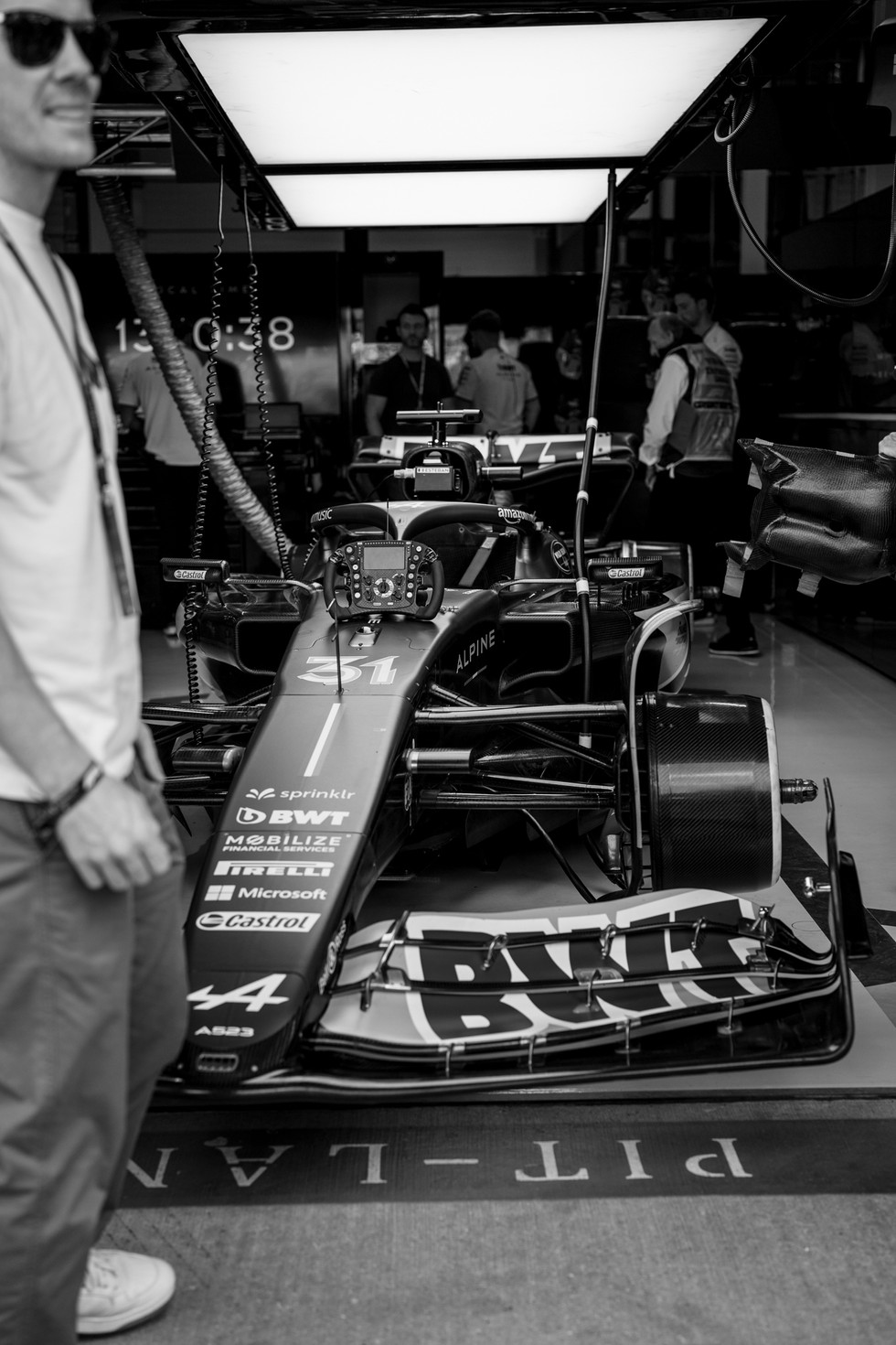 So what brought us to Silverstone? Our friends at Bell & Ross teamed up with the Alpine F1 team to create a remarkable timepiece: the BR 05 Chrono A523. "What brings the two entities together is the same passion for precision mechanics and high performance," says Carlos-A. Rosillo, co-founder of Bell & Ross. "Through this prestigious partnership, Bell & Ross is pursuing its quest for excellence and innovation." Following the launch event at the Bell & Ross boutique in London—where both the official F1 car and the watch (worn on the wrists of drivers Pierre Gasly and Esteban Ocon) were present—we were invited down to Silverstone with the Bell & Ross team to get a proper look at the build up and action. Though Ocon's race was unfortunately short-lived, the Alpine F1 team were steadfast in their professionalism (and hospitality), providing an experience we'll never forget. Here are some of the highlights from race day, and a few people you may recognise.